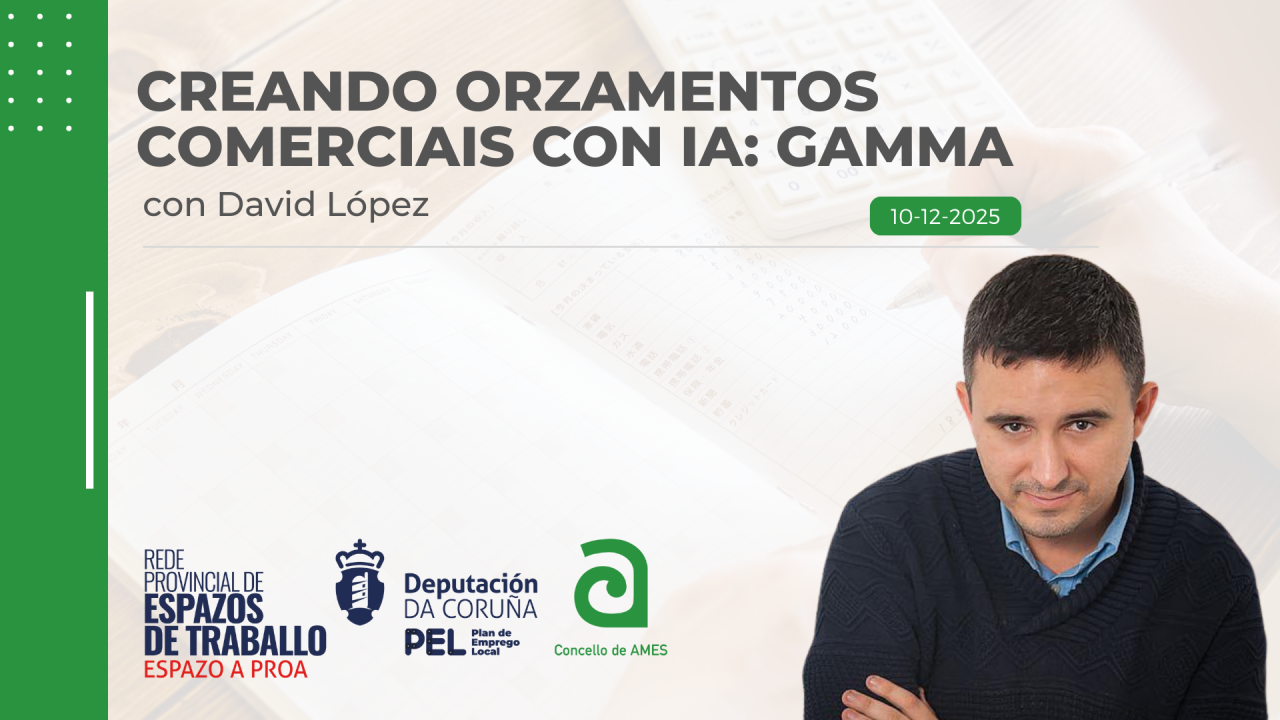Un evento dinámico e práctico no que aprenderás a elaborar orzamentos profesionais dun xeito rápido, visual e totalmente automatizado empregando Gamma, unha ferramenta impulsada por intelixencia artificial.